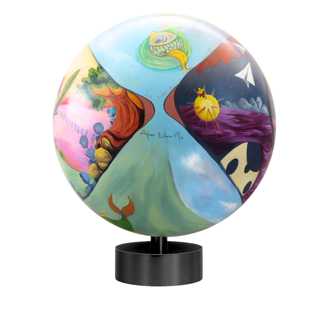 Esta obra parte de la experiencia personal del artista y de su identificación con los valores de Devlyn, desarrollándose como una composición dividida en dos planos. En la sección frontal, un paisaje esférico se transforma en un globo ocular que se abre hacia un atardecer cálido, donde el sol ocupa el lugar de la pupila e iris. Esta escena simboliza la luz de la ciencia como vínculo de unión, equidad y oportunidad para las personas con debilidad visual. El ajolote mexicano, presente sobre los lagos, representa el origen de la marca y la idea de transformación y posibilidad.