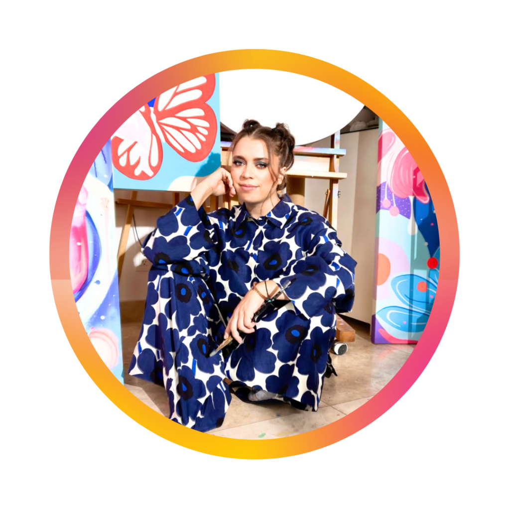 Ilustradora y muralista mexicana cuya obra se caracteriza por un lenguaje visual vibrante, narrativo y profundamente simbólico. Su práctica se desarrolla entre la ilustración, el muralismo y la intervención de objetos, creando universos llenos de color donde lo humano, lo natural y lo emocional dialogan de forma constante.