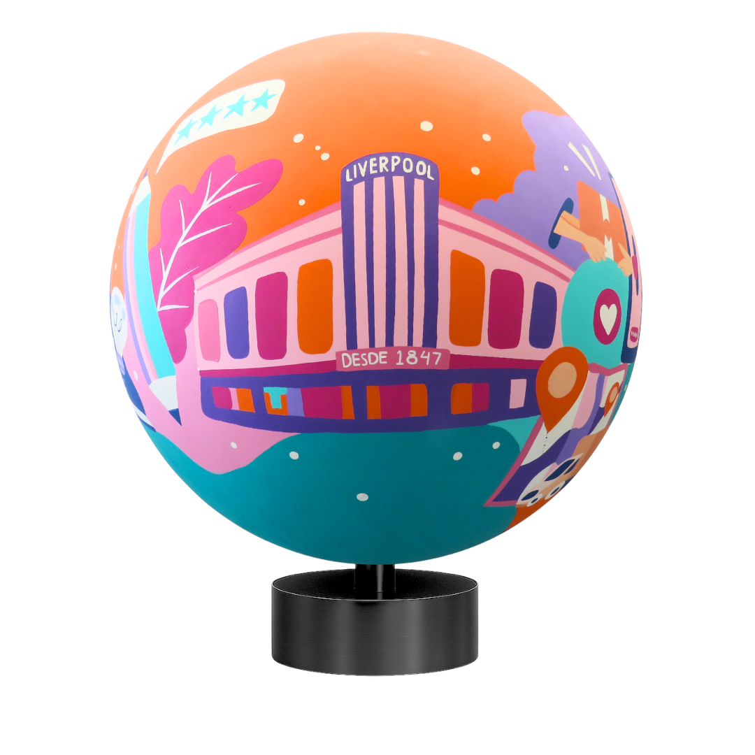 Esta pieza se concibe como una cartografía visual del alma de Liverpool, revelando su esencia como un organismo vivo, dinámico y en constante transformación. La composición se estructura a partir de dos hemisferios simbólicos. En uno, la luz del conocimiento se manifiesta a través de la Universidad Virtual de Liverpool, representando a la educación como una fuerza que inspira, eleva y construye futuro.