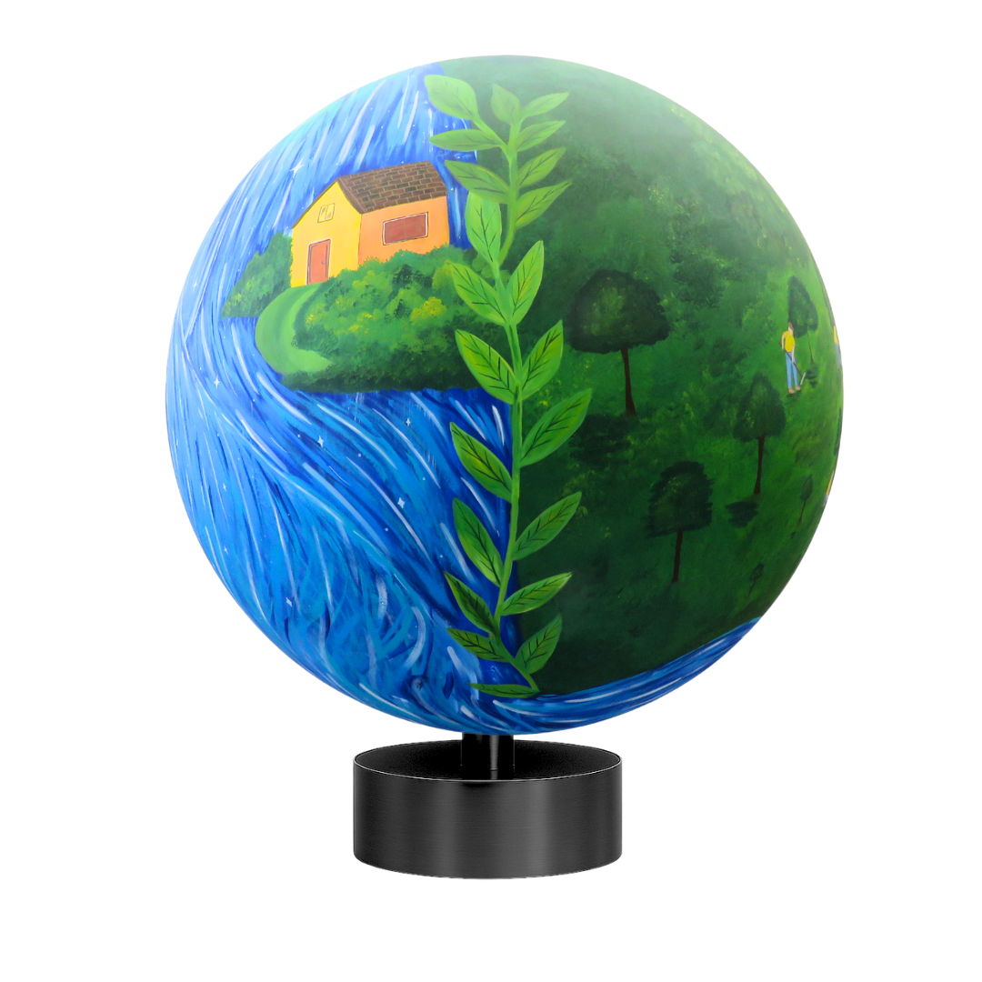 El flujo del agua conecta ambas caras y desemboca en unas manos que reciben, reforzando la idea de corresponsabilidad. La obra propone una visión integral donde hogar, comunidad y naturaleza avanzan en equilibrio.