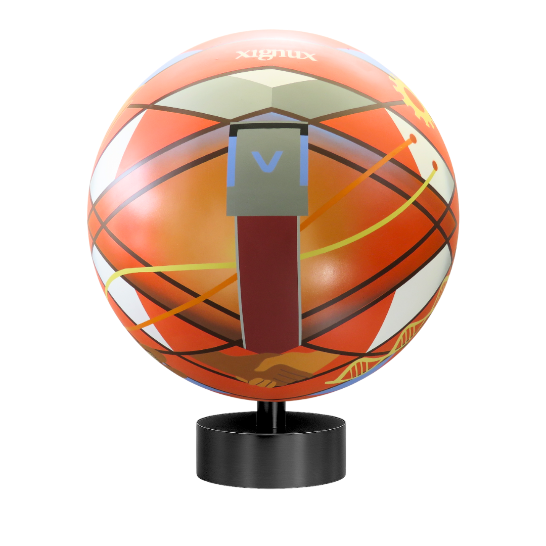 La obra toma como punto de partida la esencia de Xignux, sintetizada en la idea de energizar la vida creando conexiones de valor. La esfera funciona como metáfora de una sociedad en movimiento, iluminada por colores cálidos —amarillo, rojo y naranja— que representan entusiasmo, optimismo, confianza y vitalidad en comunidades activas y conectadas.